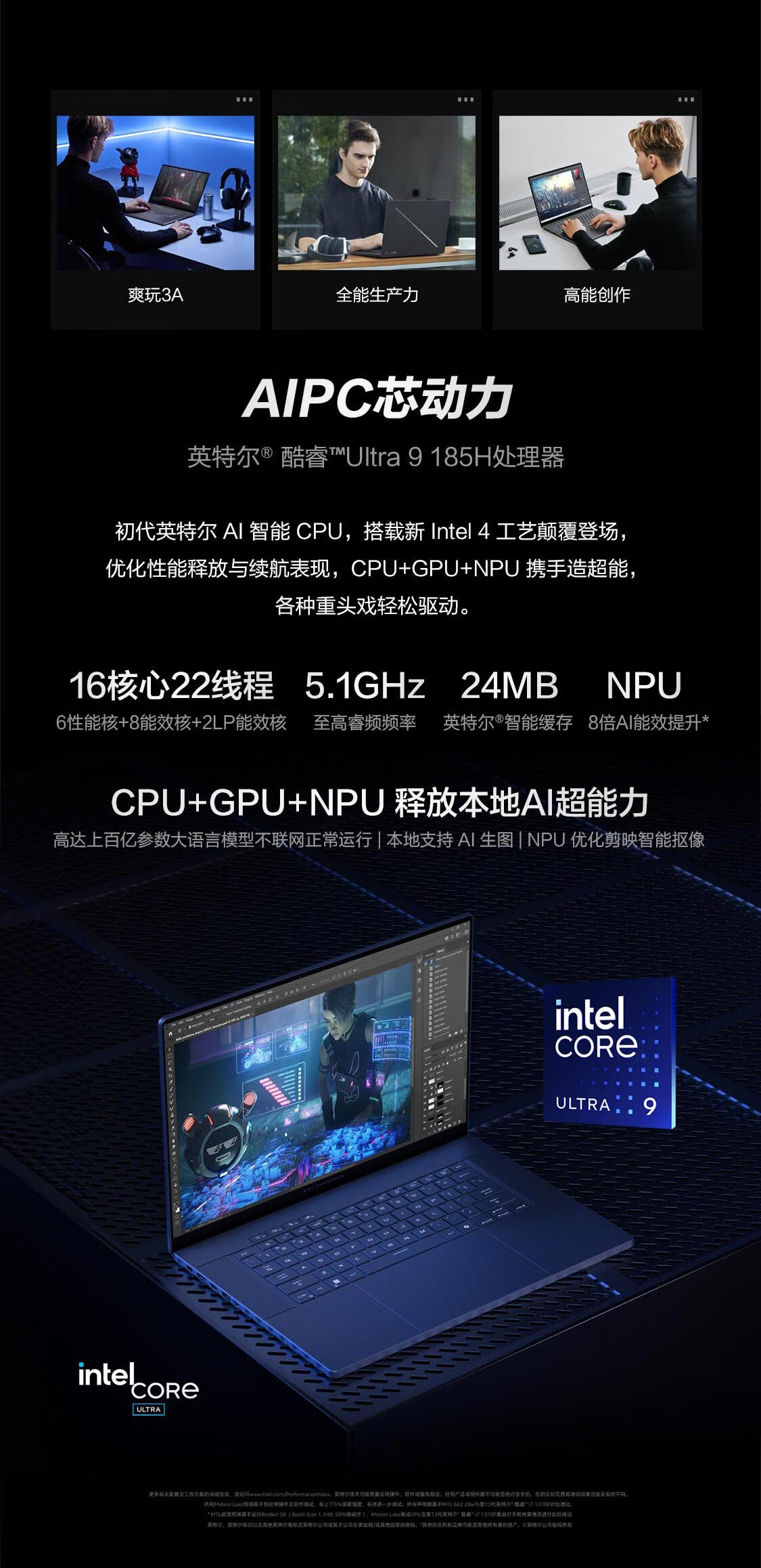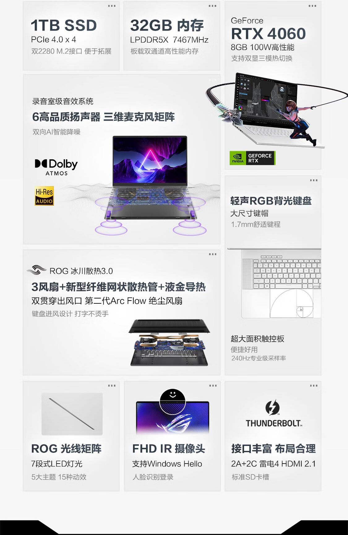 商品名称:ROG幻16 Air 酷睿Ultra 9 16英寸设计师游戏本笔记本电脑(U9-185H 32G 1T RTX4060 2.5K 240Hz)日蚀灰