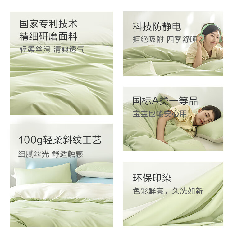 京东京造小京研三件套 100g轻柔夏季A类床单被套床上三件套 1.2米床 芽绿